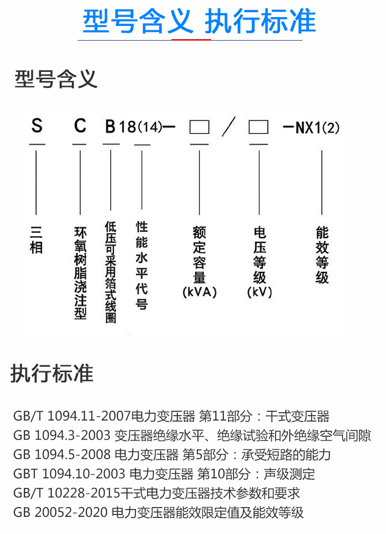 電力變壓器能效限定值及能效等級》標準中新增的干式變壓器型號。