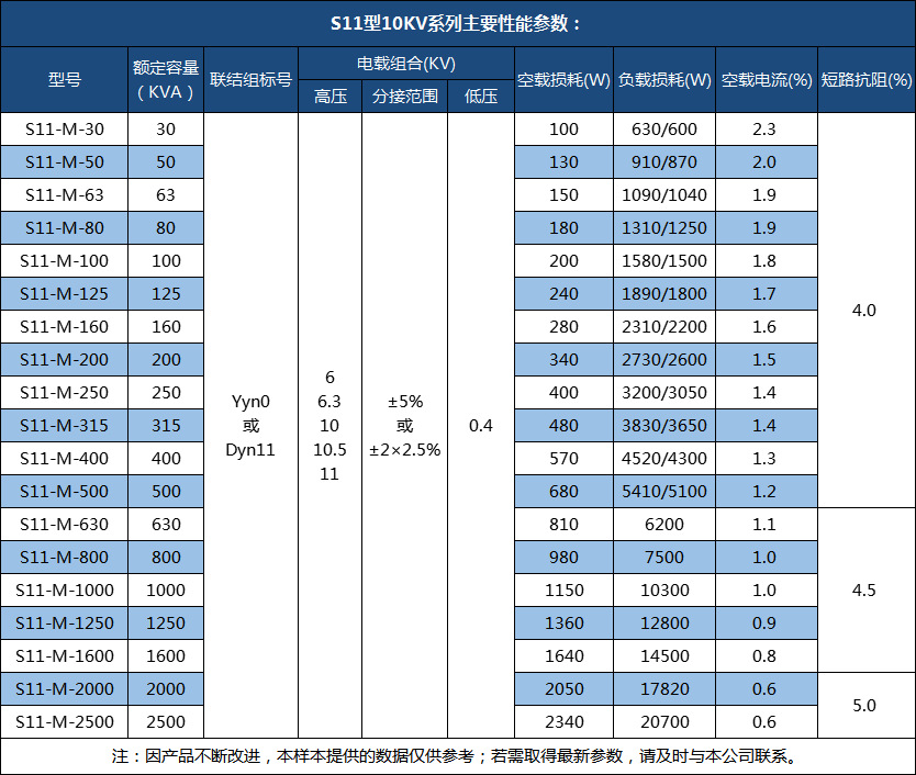 S11-315KVA油浸式變壓器性能特點
